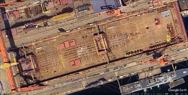 ▲谷歌地球发布的004型航母分段卫星图
